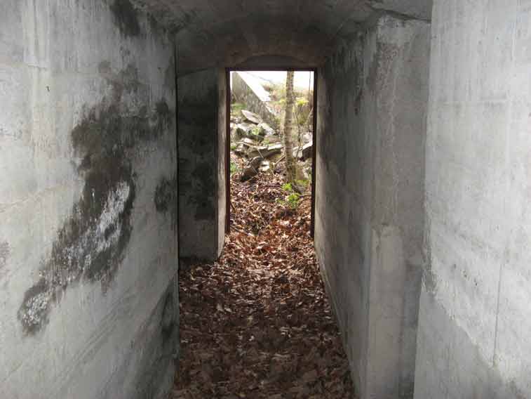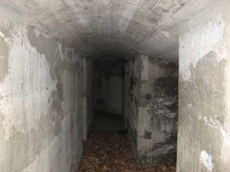 Il corridoio principale.Diritti verso la casamatta dell'arma,a dx il vano portamunizioni e a sx il vano della fotofonica di collegamento con la 26