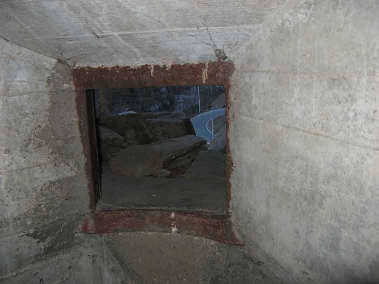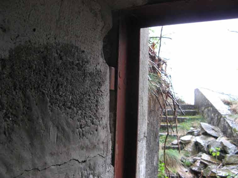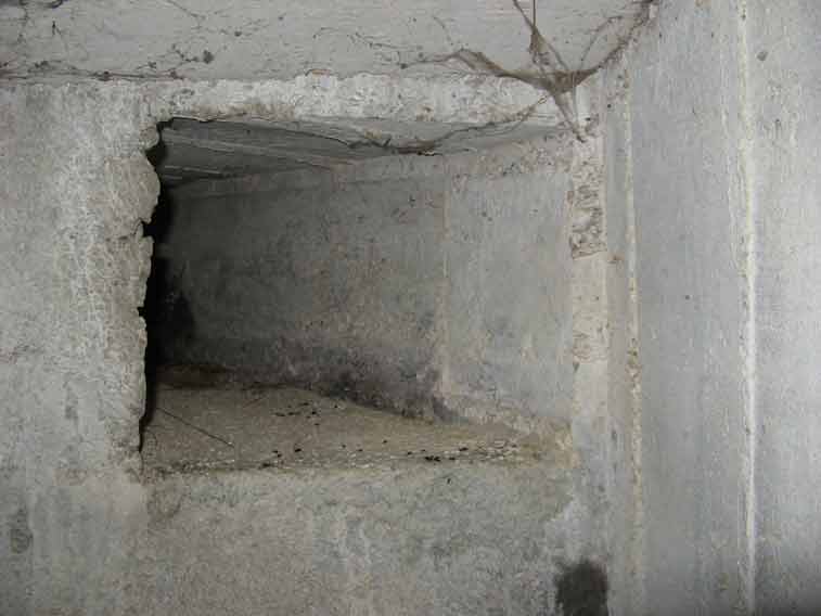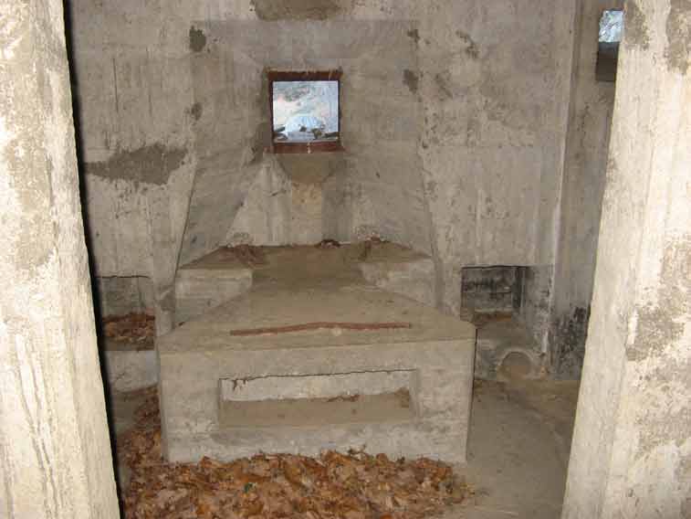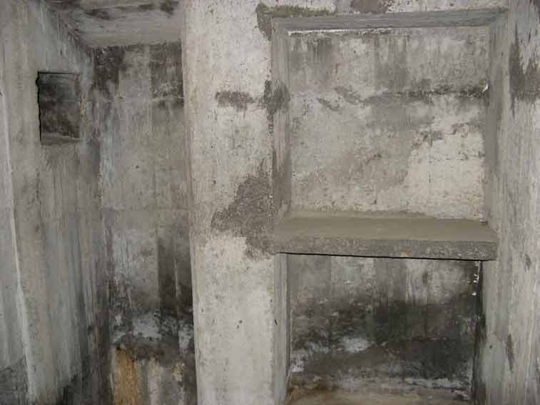 Interno della casamatta.A dx ripiani portaoggetti e a sx il vano della fotofonica di collegamento con la 28