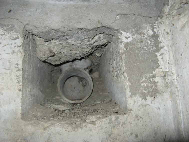 Il tetto visto verso l'ingresso.Notare il finto comignolo