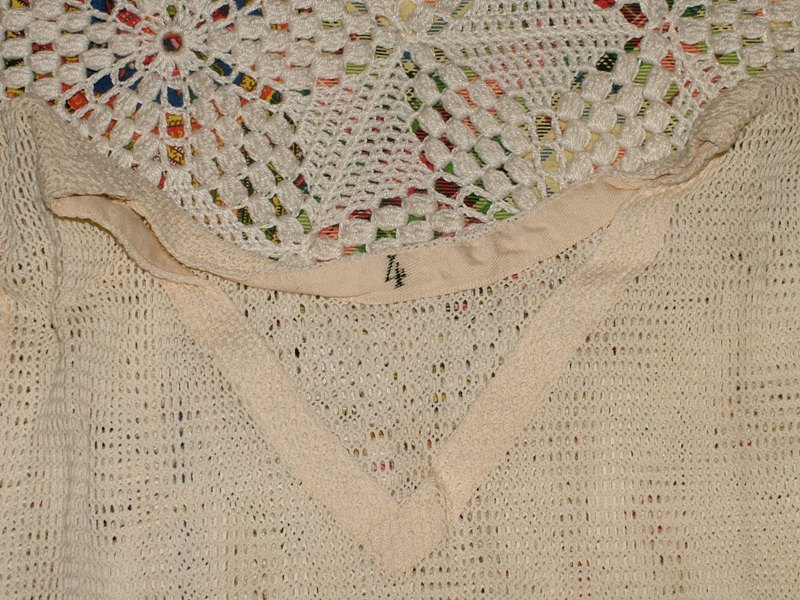il bottone in CP a due fori specifico da camicia e il tessuto in dettaglio.Questo tessuto (aertex) era composto di cotone, lana e fibre sintetiche di derivazione cellulosica con lavorazione a "maglina". Ancora oggi è possibile ritrovare dei minuscoli pezzettini di legno nel filato che sono ottimo indice di originalità*.