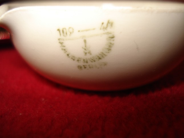 L'oggetto è di porcellana, ha un beccuccio ed è marcato ma si riesce a decifrare ben poco; mi pare che ci sia scritto Berlino.