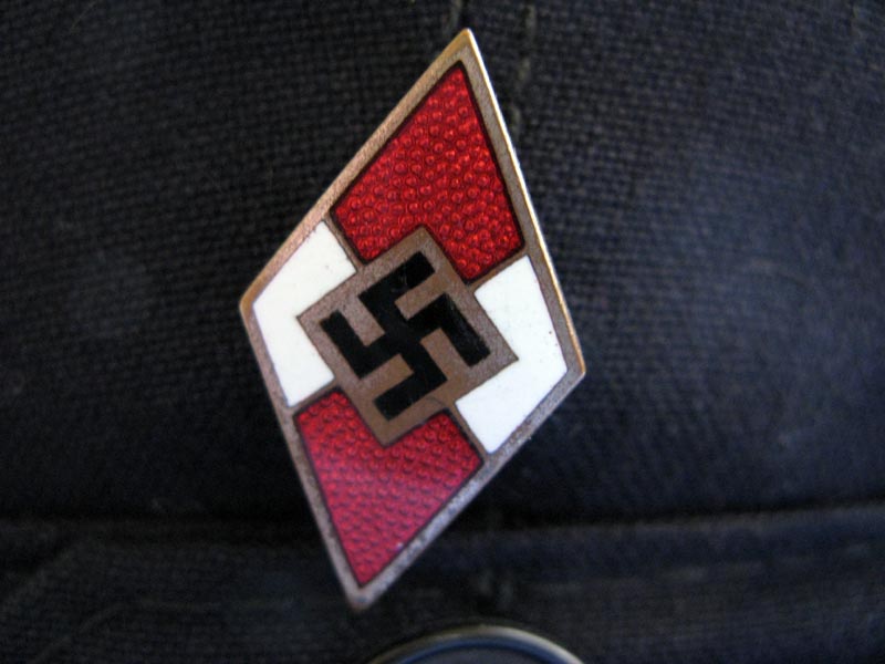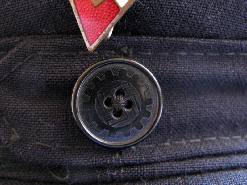 altro pezzo che vi posto è questo berretto della Hitlerjugend, con stemma in metallo anzichè cucito a macchina, cosa che ho riscontrato in pochissimi esemplari. Notare il bottone con lo stemma del DAF, il Deutsche Arbeit Front. Spero vi piaccia: