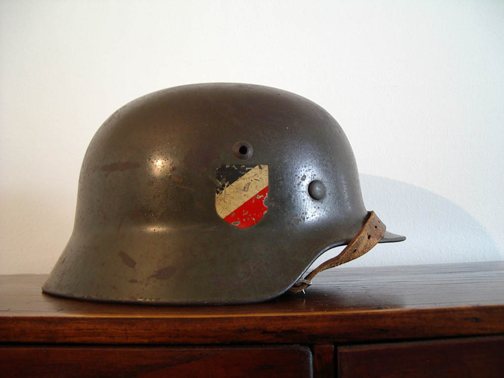 A me il tuo elmo pare ok! Pe quanto riguarda eventuali rimontaggi bisognerebbe vedere nei particolari gli spinotti che reggono l'imbottitura. Quest'ultima comunque mi pare coerente con l'elmo. Idem per il soggolo. Servirebbero tuttavia foto particolareggiate degli accessori per poter esprimere un giudizio più preciso (da queste immagini più di così non riesco a dire). Ciò che posso ancora aggiungere è che l'elmetto sembra sia stato ripulito a fondo. Quindi forse qualche restauro potrebbe esserci effettivamente stato.