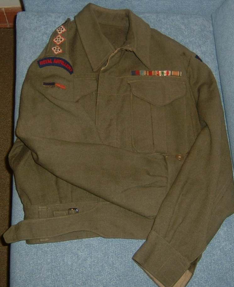 Ecco un altro pezo di recente acquisizione, lo posto perché ha delle particolarità* piuttosto interessanti. Si tratta di un battle dress pattern 1937 made in Australia, datato 1942. L'esercito australiano durante la II GM non aveva adottato il Battle Dress di foggia britannica, ma ha continuato a usare una giacca a quattro tasche sostanzialmente simile a quella della prima guerra mondiale. Il BD di questo tipo verrà* poi adottato dall'esercito australiano negli anni'50. I battle dress prodotti in Australia sono stati distribuiti all'esercito britannico e a altre formazioni del Commonwealth (ne ho ben due, molto interessanti, con le insegne della 4a e della 10a Divisione indiane) impiegati sopratutto sul fronte italiano. Questo ha le insegne generiche di un capitano della Royal Artillery che ha combattuto in Africa del Nord e in Italia.
