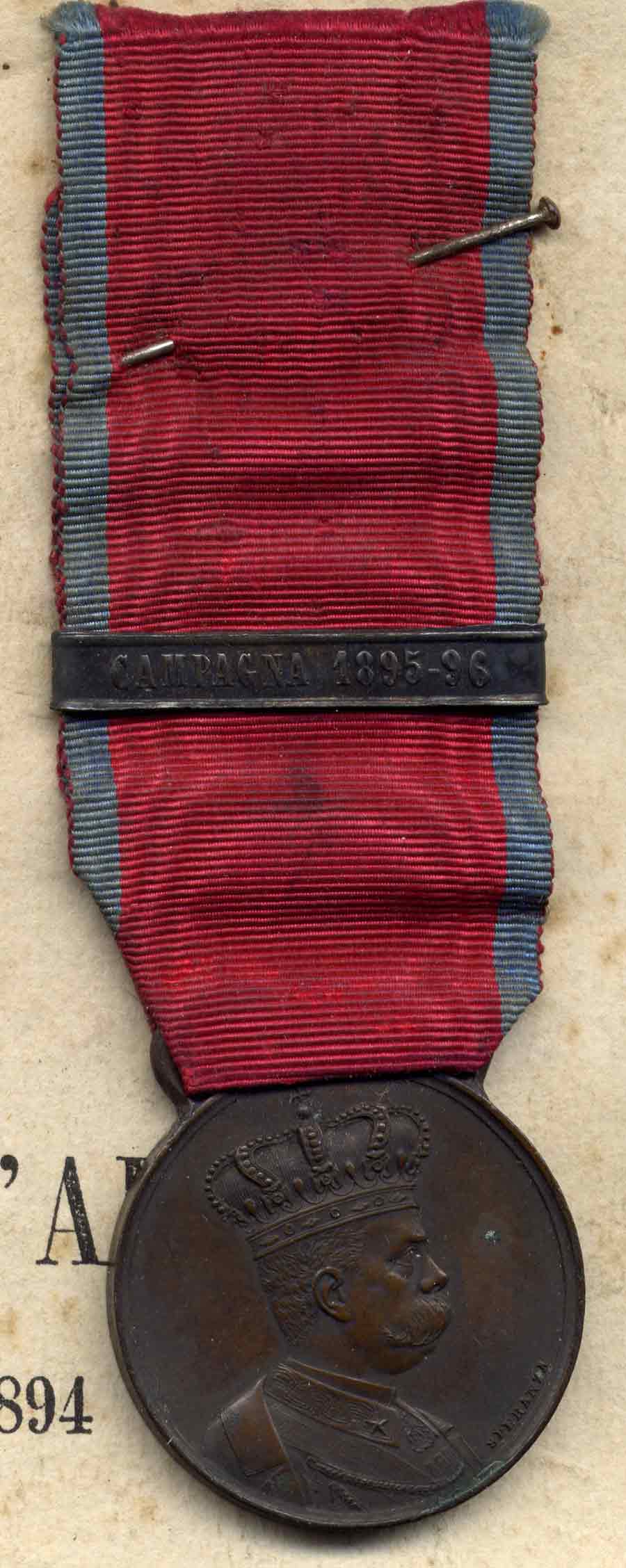 Tornando alla medaglia e alle sue fascette, la "campagna 1895-96" è certamente la più comune poichè, oltre a essere l'unica Fascetta che "copriva" Diversi combattimenti (quasi tutti persi dagli Italiani), rappresenta l'unica campagna coloniale dell'ottocento, a parte la spedizione del 1887-88 la cui fascetta venne però adottata solo nel 1906, condotta con l'impiego massiccio di truppe metropolitane; in particolare ad Adua.