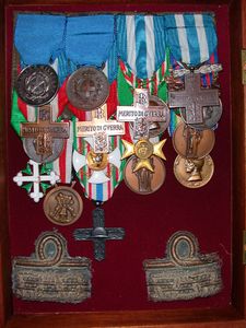 Ciao a tutti,volevo condividere con voi il medagliere ed il berretto appartenuti al Nonno di mia moglie,divenuto comandante del 152^ Rgt di fanteria.