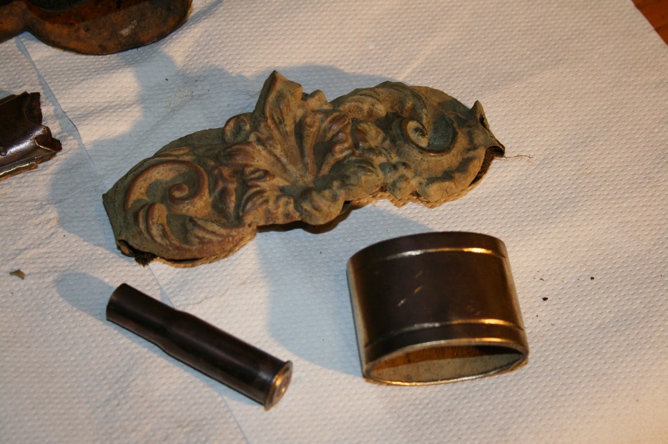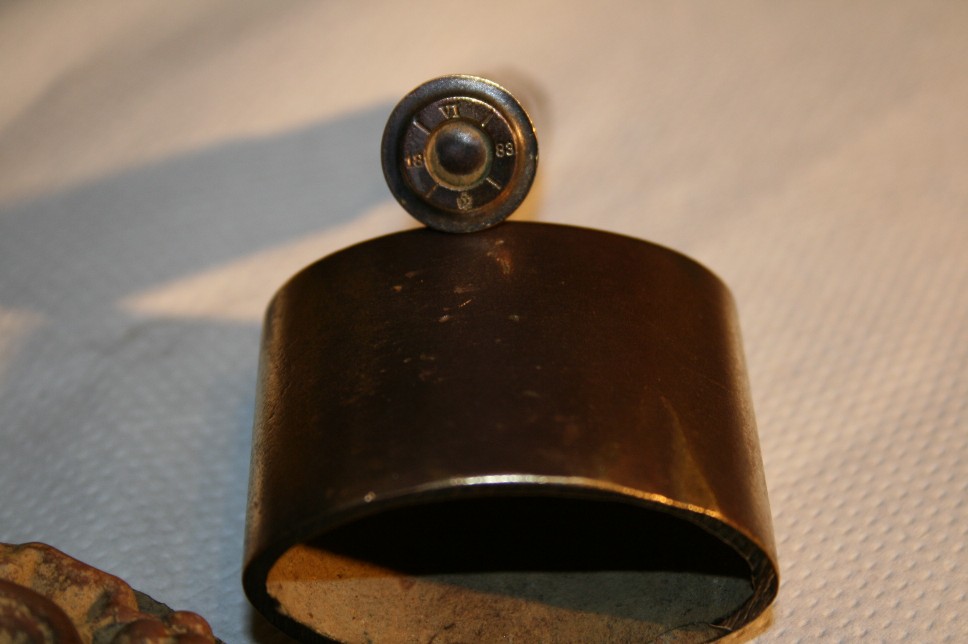 Salve, ecco ancora tre oggettini alquanto anomali ma provenienti da sicure e remote prime linee italoaustriache. Trattasi di un bossolo per fucile, ne ho visti tanti, ma questo??? Datato VI 1883 e reca una corona, diametro ogiva 1,1mm, oggetto in ottone,bello ma pesantino,sembra una parte di fodero per daga, oppure un portatovaglioli per ufficiale????e uno strano oggetto lavorato in lega leggera con due fori laterali(parte di stufa??)Anticipo notevoli GRAZIE per eventuali aiuti.