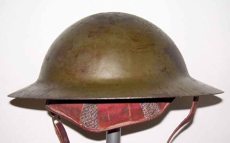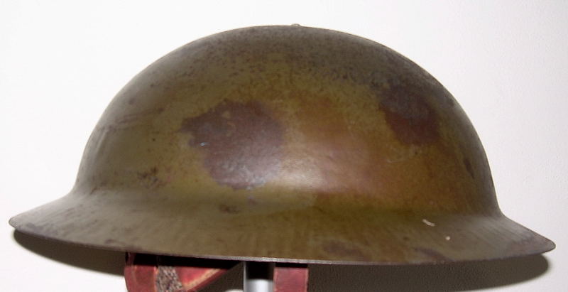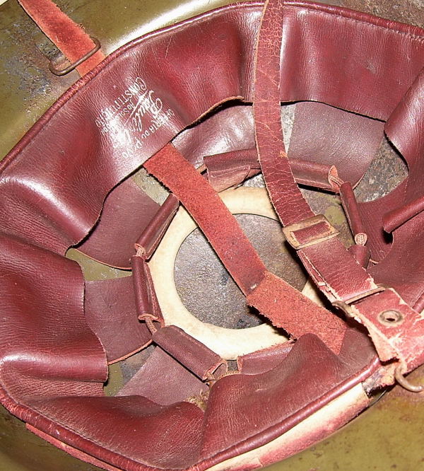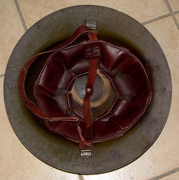 La cuffia ricorda quelle anglo-americane dei Brodie / M17 della 1gm; non so se il soggolo sia originale, in tutto o in parte, perché i due pezzi sono diversi fra loro; ma l'aspetto è antico e probabilmente si tratta di una riparazione fatta in anni lontani.