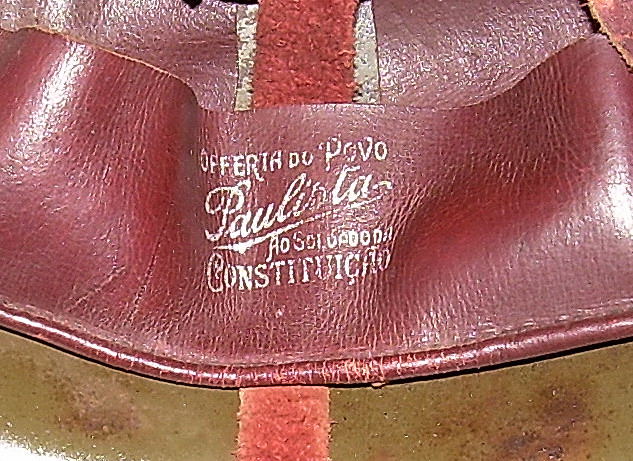 Particolarità* degli elmetti brasiliani, la tipica dedica presente stampata in colore argento "Offerta do povo paulista ao soldado da constituià§à£o"
